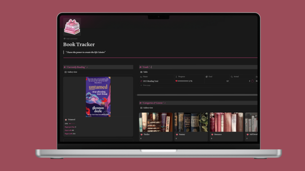Book Tracker$5$5https://schema.org/InStockusdAdela's NotionAdela's NotionAdd to cartAdd to wishlist New wishlistShareShare on XShare on Facebook Copy linkCopy product URL